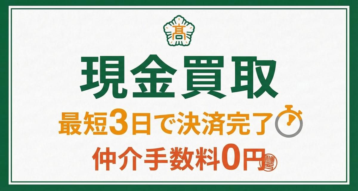 東京の業者のような長い審査はありません。地元の大家が直接買い取るため、最短3日で現金化が可能です。仲介手数料も0円です。